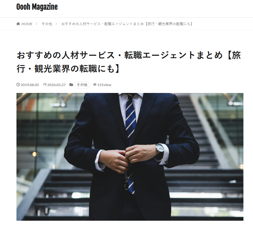 「おすすめの人材サービス・転職エージェントまとめ【旅行・観光業界の転職にも】」に当社が掲載されました。 |